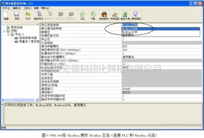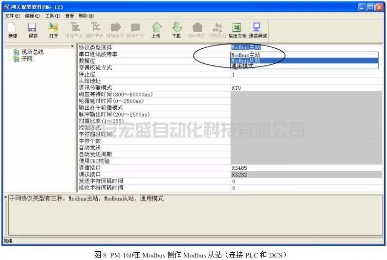 1)、使用配套軟件設(shè)置PM-160的現(xiàn)場總新和子網(wǎng)相關(guān)參數(shù)和命令通過撥碼開關(guān)將PM-160設(shè)置為配置狀態(tài),打開安裝的配置軟件,當(dāng)實(shí)現(xiàn)PLC與DCS通信時,子網(wǎng)協(xié)議類型設(shè)置為 Modbus從站,并設(shè)置串口通信波特率、數(shù)據(jù)位、奇偶校驗(yàn)位、停止位、PM-160作為 Modbus從站的地址、通信接口。