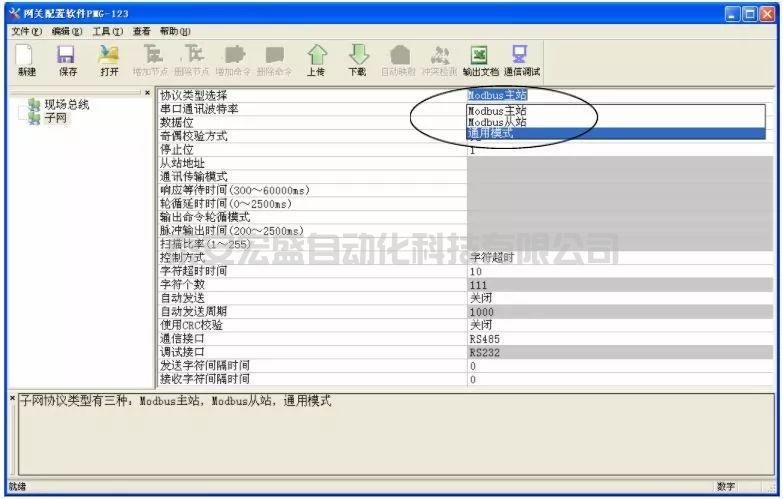 當(dāng)實(shí)現(xiàn)PLC與非標(biāo)協(xié)議設(shè)備通信時,子網(wǎng)協(xié)議類型設(shè)置為通用模式,并設(shè)置串口通信參數(shù)、控制方式、通信接口等。其中,串口通信參數(shù)的設(shè)置應(yīng)該和所連接的非串口設(shè)備(現(xiàn)場智能儀表)一致,PM160支持的通用模式即透明傳輸模式。