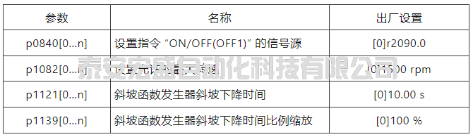 注意:當(dāng)控制權(quán)在調(diào)試軟件控制面板(STARTER\Startdrive)、操作面板(BOP-2\IOP-2)時OFF2(P844)、OFF3(P848)開關(guān)量連接器輸入的信號無效。