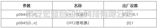 設(shè)置參數(shù)p0844[X],p0845[X]兩個參數(shù)為邏輯與的關(guān)系,當(dāng)有一個參數(shù)置0時變頻器觸發(fā)OFF2停車命令。