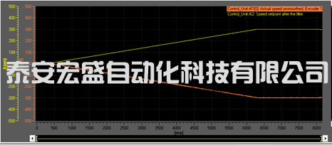 首先設(shè)置P1300=0,使變頻器運(yùn)行在開環(huán)方式下,然后給定速度并啟動變頻器。變頻器運(yùn)行后,查看參數(shù)r61的值與設(shè)定速度r62的值是否一致,如果這兩個值一致,則說明方向正確。如果這兩個值相反,則說明當(dāng)前速度編碼器的方向反了,就像下圖曲線顯示的一樣,這時就需要對速度編碼器反饋的速度實(shí)際值進(jìn)行取反操作了。