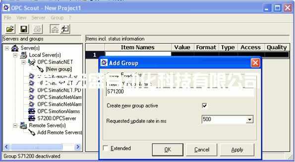 雙擊OPC.SimaticNET,新建一個組并輸入變量組的名稱,例如S7-1200 。如圖16所示。