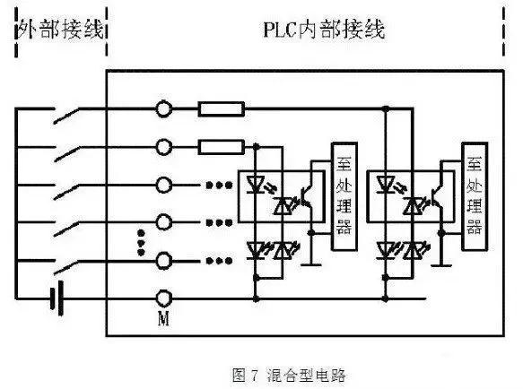 因為此類型的PLC公共端口既可以接外接電源的正極也可以接負(fù)極,同時具有源輸入電路和漏輸入電路的特點,所以我們可以姑且把這種輸入電路成為混合型輸入電路,如下圖所示: