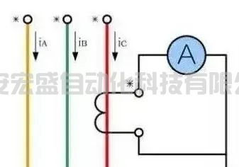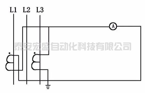 圖C,兩臺互感器V形接線方法,測量對稱和不對稱三相三線電路中線路上的電流。三相電流矢量和為零,所以最下面電流表測量的是未裝互感器那相的電流。此接法也可用于繼電保護接線,但靈敏度低。