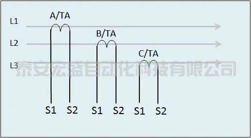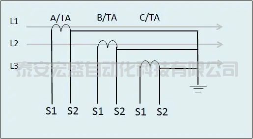 圖B,三臺互感器星形接線方法,可測量對稱和不對稱三相電路(包括三相四線)中線路上的電流。