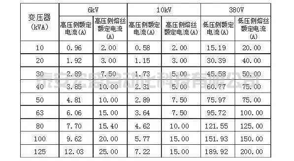 5.選擇低壓側(cè)熔絲電流一般選等于低壓側(cè)額定電流,若需選大一級(jí),最大不能超過額定電流的30%。