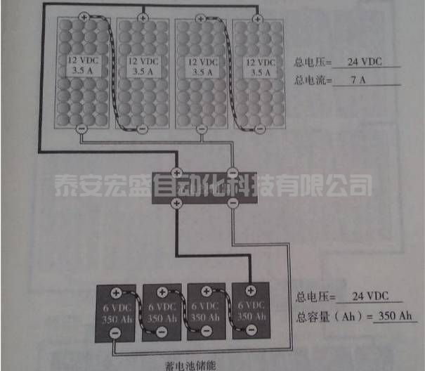 例如用4個12V的PV組件設計一個24V的離網(wǎng)系統(tǒng):