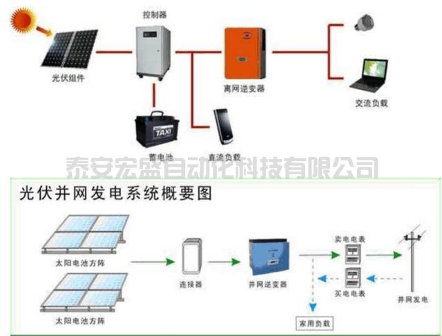 并網(wǎng)系統(tǒng)和離網(wǎng)系統(tǒng)的示例對比照: