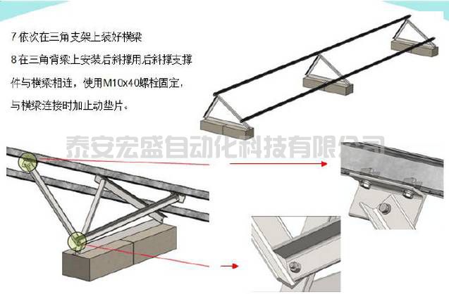 安裝扣件支架及光伏板步驟具體如圖所示: