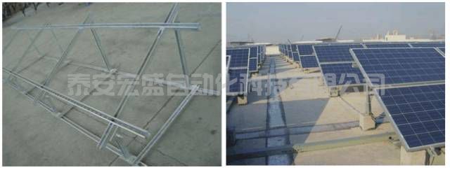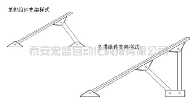 當圍墻過高或者地面有障礙物(避雷帶、線管、橋架)的時候可用這種帶抬高腳的支架,屋面開闊也可以雙排鋪設: