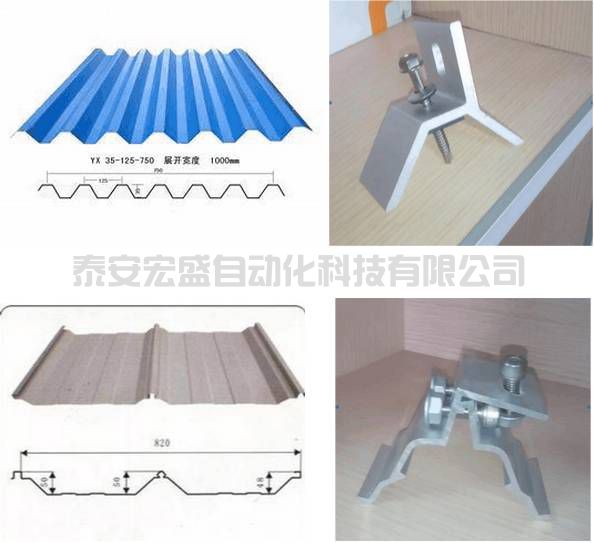 1、按圖紙指定位置,將鋼板夾的正面和背面卡在彩鋼板上,并使用螺釘固定(盡量一次性固定所有鋼板夾,如果不行則一次固定兩行方便安裝光伏組件)。