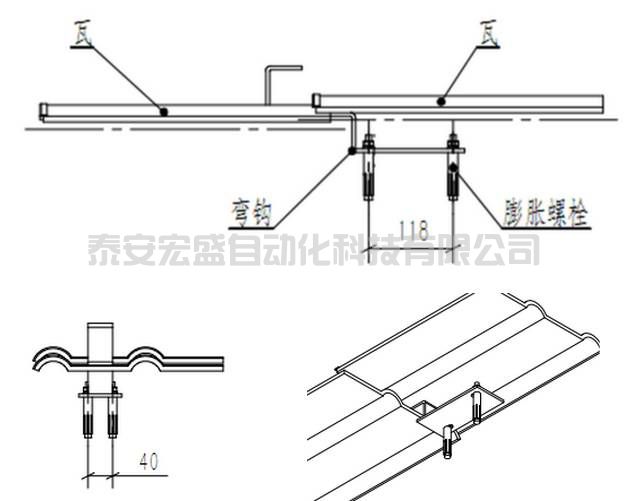 瓦片屋頂?shù)膹濄^固定密度與彩鋼瓦的密度相當,每平方米固定4個彎鉤: