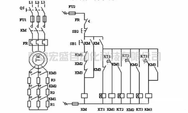 六、三相繞線感應(yīng)電動(dòng)機(jī)轉(zhuǎn)子繞組串電阻降壓啟動(dòng)控制系統(tǒng)(I/O分配表、PLC接線圖、梯形圖程序)