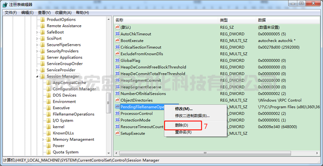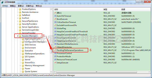 3.進入注冊表編輯器界面(依次按照下圖紅框1 2 3 4 5步驟展開,到第六步的時候鼠標選中它,第七步鼠標右擊刪除它即可)。