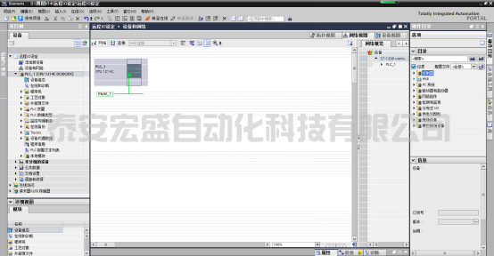 5、如下圖所示在右側(cè)目錄中可以看到有很多可添加的模塊選項,在網(wǎng)絡(luò)視圖中目前沒有添加任何模塊,添加西門子品牌的遠程I/O在目錄內(nèi)即可找到想要添加的模塊型號,比較簡單,我們重點總結(jié)一下其他第三方模塊的添加方法;