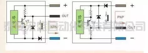 3、有源三線傳感器(電感接近開關(guān)、電容接近開關(guān)、霍爾接近開關(guān)、光電開關(guān)等)直流有源三制線接近開關(guān)與光電開關(guān)輸出管使用三極管輸出,因此傳感器分NPN和PNP輸出,有的產(chǎn)品是四線制,有雙NPN或雙PNP,只是狀態(tài)剛好相反,也有NPN和PNP結(jié)合的四線輸出。