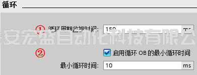 ① “循環(huán)周期監(jiān)視時(shí)間”:設(shè)置程序最大的循環(huán)周期時(shí)間,范圍為 1~6000 ms,默認(rèn)值為150 ms。超過(guò)這個(gè)設(shè)置時(shí)間,CPU 會(huì)報(bào)故障。超過(guò) 2 倍的最大循環(huán)周期檢測(cè)時(shí)間,無(wú)論是否編程時(shí)間錯(cuò)誤中斷 OB80,CPU 都會(huì)停機(jī)。在編程了時(shí)間錯(cuò)誤中斷 OB80 后,當(dāng)發(fā)生循環(huán)超時(shí)時(shí) CPU 將響應(yīng)觸發(fā)執(zhí)行 OB80 的用戶(hù)程序,程序中可使用指令“RE_TRIGR” 來(lái)重新觸發(fā) CPU 的循環(huán)時(shí)間監(jiān)控,最長(zhǎng)可延長(zhǎng)到已組態(tài)“循環(huán)周期監(jiān)視時(shí)間”的 10 倍;