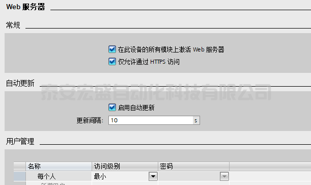 激活“啟用使用該接口訪(fǎng)問(wèn) Web 服務(wù)器”,則可以通過(guò)該接口訪(fǎng)問(wèn)集成在 CPU 內(nèi)部的 Web 服務(wù)器。