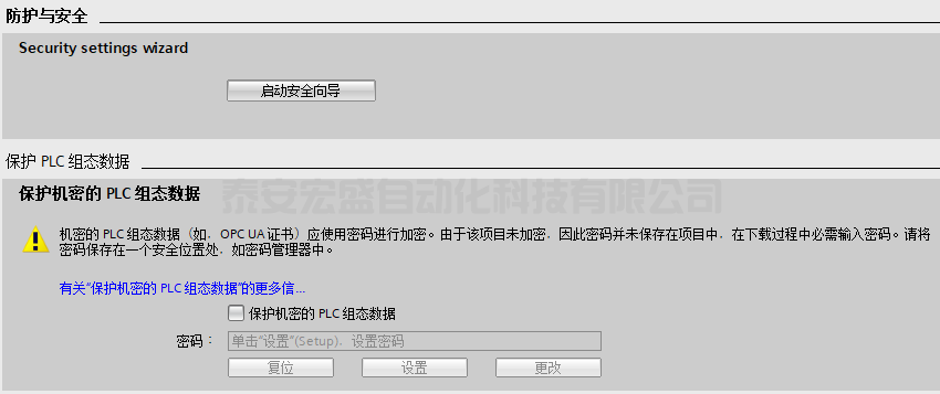 “啟動(dòng)安全向?qū)А保篤4.5 開(kāi)始支持。此按鈕可以啟動(dòng)安全向?qū)?,設(shè)置防護(hù)與安全相關(guān)參數(shù),如圖 PLC 安全向?qū)гO(shè)置。